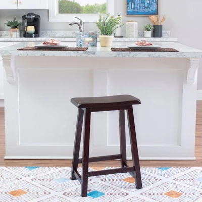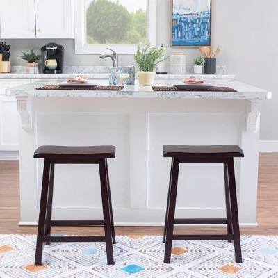 The classic design and style of the 24″ Saddle Stool easily complements any home’s décor. The sloping seat adds comfort to the stool while the four footrails provide stability and durability. Finished in a dark brown, this piece is an easy addition to any color scheme. Ideal for any home counter or high-top table. 275-pound weight limit.