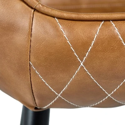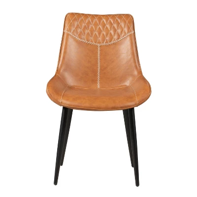 Contemporary and classic, the Edler Dining Chairs fit into a variety of environments with ease. The curved scoop seat makes for comfort, while the black metal legs are crafted for durability. The faux leather-like upholstery is accented with white quilting and baseball style stitching details. Set of Two.