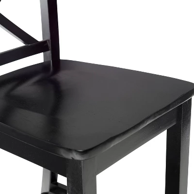 The elegance and unique style of this Black X Back Stool will carry throughout your kitchen, dining, or home pub area. Finished in rich Espresso. The clean lines and solid construction ensure that this stool is durable enough for a busy kitchen, yet elegant enough for a more formal setting. 30″ seat height. 225lb weight limit.