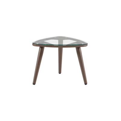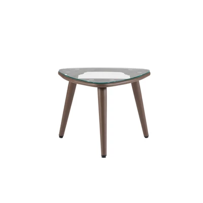 - TRIANGULAR GLASS TABLE OFFERS AMPLE SPACE FOR DRINKS AND APPETIZER PLATES