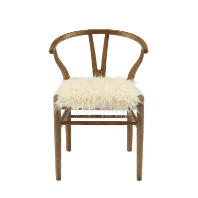 Dramatic and bold, the Ellis Wishbone Chair is perfect for adding fun style to your space. The chair has a trendy wishbone styled frame that is finished in a neutral brown/gray washed finish. The faux fur seat is soft, plush and eye-catching!