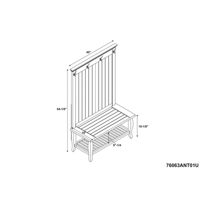 Add efficient and traditional style storage to your hall or mud room with this Santa Fe Hall Tree. With its Antique Pine finish the hall tree adds warmth to your space. Organize your space by utilizing the four attached hooks on the Santa Fe Hall Tree. The open and spacious top and bottom shelves are ideal for storage. The shelves are versatile and can also be used to house accessories or storage bins. This piece will be sure to enhance the functionality of your space.