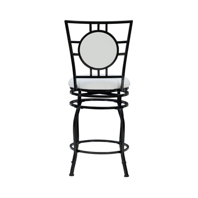 The Townsend Adjustable Stool is a sleek modern addition to any counter, bar or high-top dining table. A dark black finish allows the white PU seat and back to pop! A swivel seat and adjustable leg height provides versatility and functionality to the piece. Crafted of metal, the stool is sturdy and durable. 275-pound weight limit.
