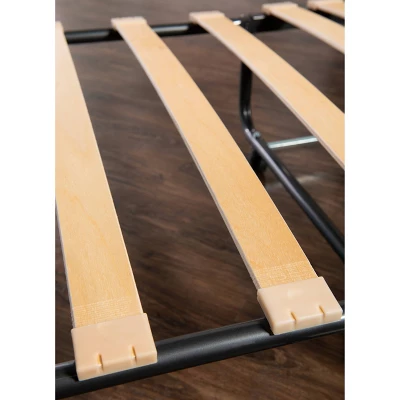 The ultimate folding bed, the Roma Folding Bed is the perfect solution for overnight guests. Simple and easy to use, the bed sets up in mere seconds and provides guests with an ultra-comfortable, supportive foam topped mattress for a restful night’s sleep. Wood slats and a steel metal frame provide for stability and durability while four casters make mobility easy. When not in use, the bed is compact enough to store away in almost any closet. Use as a convenient and cozy guest bed, kid’s bed, day bed, or lounger.
