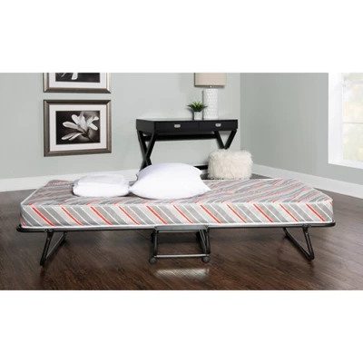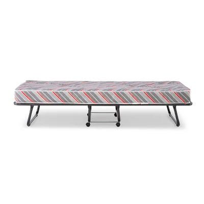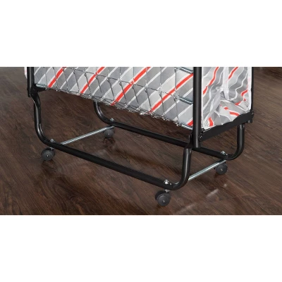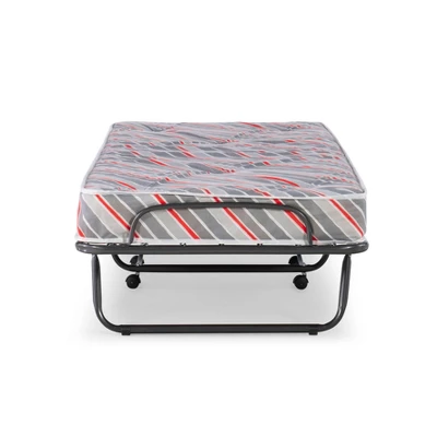 The ultimate folding bed, the Torino Folding Bed with Mattress is the perfect solution for overnight guests. Simple and easy to use, the bed sets up in mere seconds and provides guests with an ultra-comfortable, supportive mattress for a restful night’s sleep. A steel metal frame with wire supports provides for stability and durability while four casters offer easy mobility. When not in use, the bed is compact enough to store away in almost any closet. Use as a convenient and cozy guest bed, kid’s bed, day bed, or lounger.